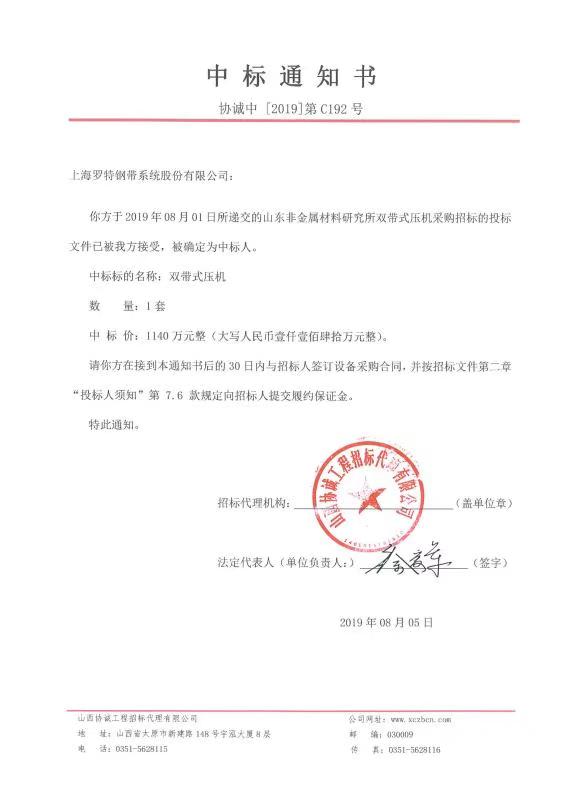 В августе 2019 года, после ожесточенных торгов с несколькими подразделениями, Shanghai Rot Steel Systems Co., Ltd. выиграла тендер на двухполосный пресс Шаньдунского института неметаллических материалов!